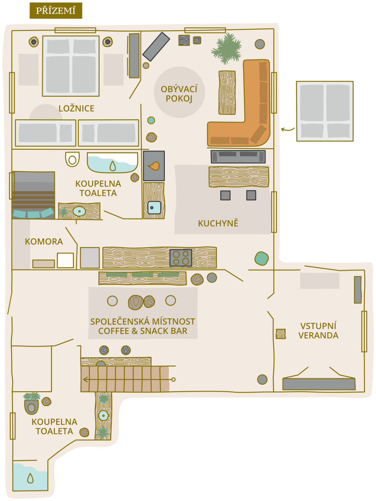 Celý prostor je určen jen vám, garantujeme tak maximální soukromí a pohodlí. Některé technické nebo úklidové prostory jsou uzamčené a nejsou součástí hostovského přístupu.